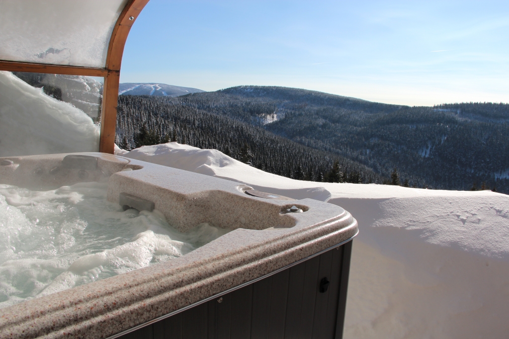 A již je to tady ,vířivka víří na čerstvém horském vzduchu.